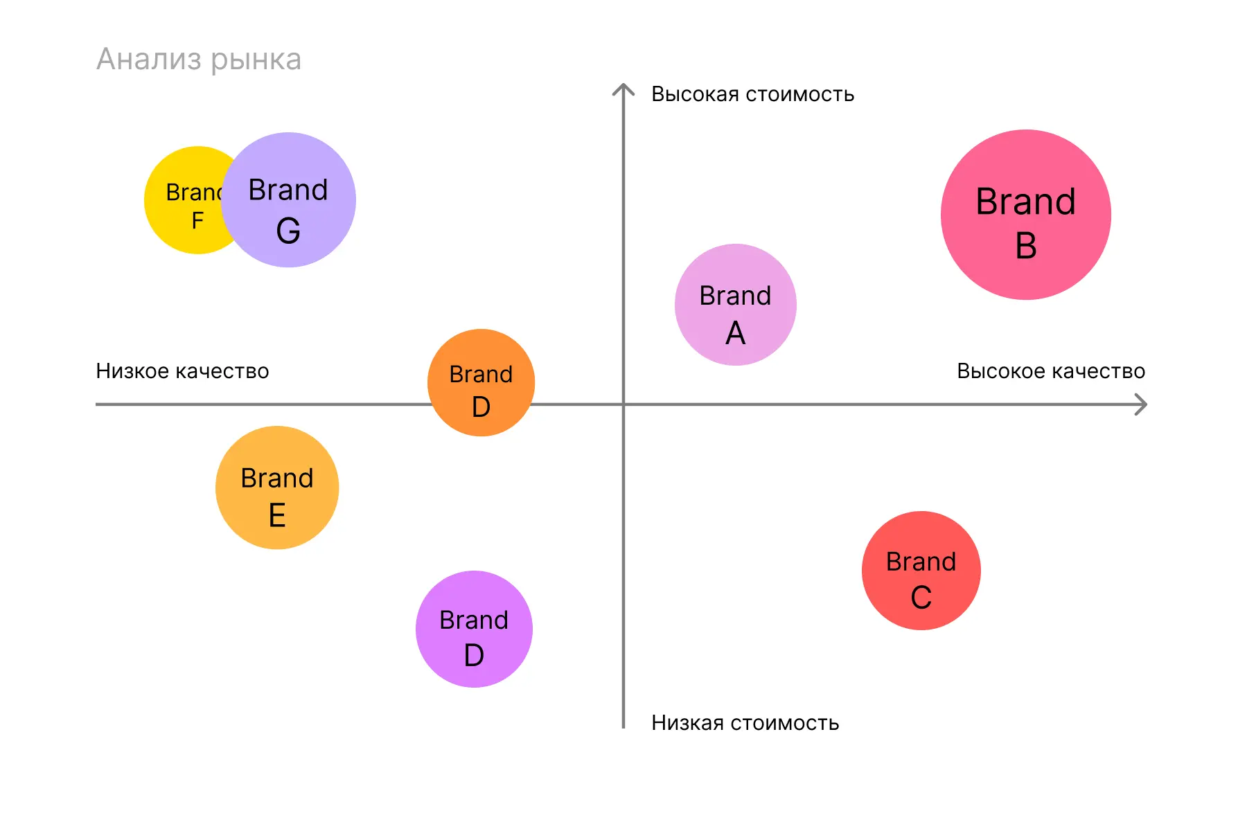 Изучение конкурентов — важнейший этап создания бренда. Понимание того, что делают ваши конкуренты, поможет вам эффективнее позиционировать свою компанию, продукт или услугу на рынке. Анализ конкурентов направлен на выявление сильных и слабых сторон и угроз для вашего бизнеса. Детальное исследование конкурентов позволяет выявить участников и тенденции отрасли, перспективные ниши для создания и развития новых брендов. Постоянное изучение конкурентов позволяет планировать стратегию развитие вашего бренда, улучшать качество вашего предложения, найти наиболее эффективные каналы продвижения. Исследование конкурентов необходимо осуществлять на каждом этапе жизненного цикла вашего бренда, чтобы оставаться конкурентоспособными и следить за изменением предпочтений аудитории.