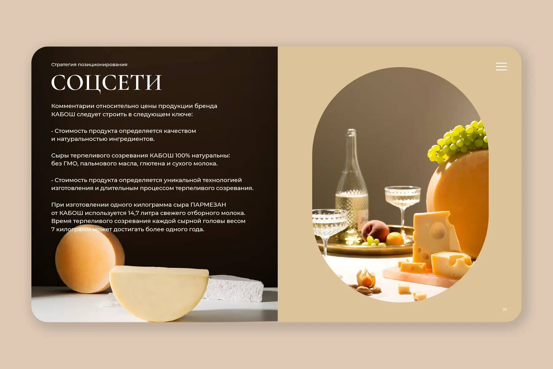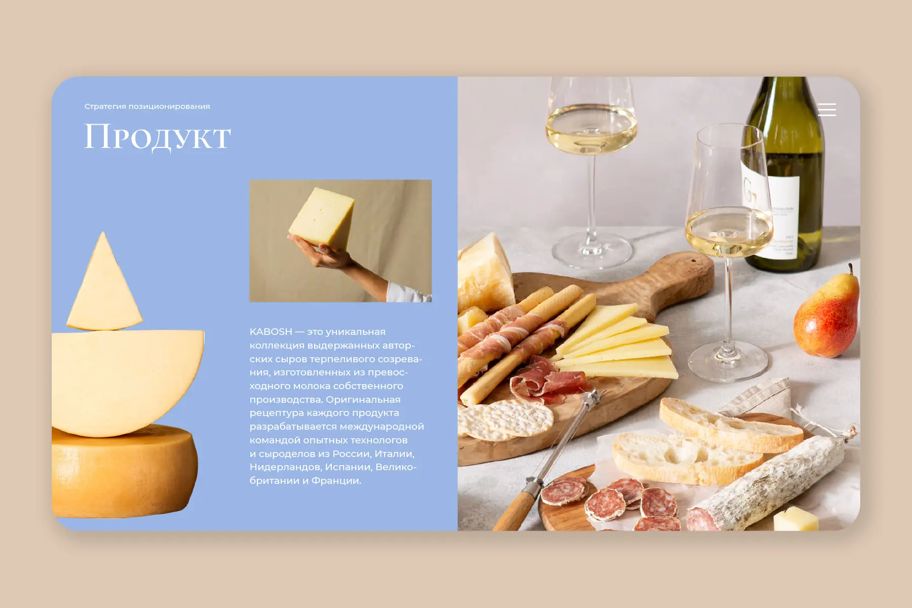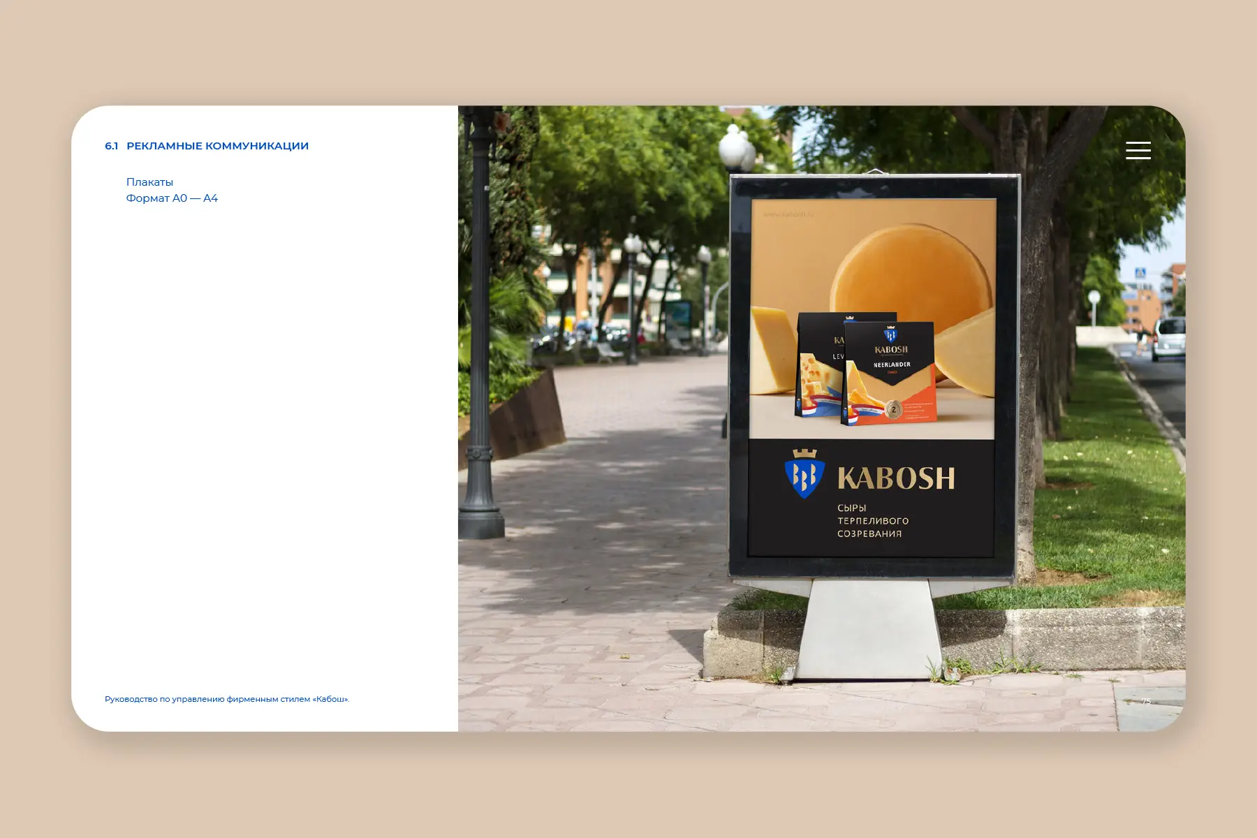 KABOSH. BRANDEXPERT agency made a comprehensive rebranding for cheese producer KABOSH. A brand platform, logo, corporate identity, advertising design, product packaging and brandbook were developed.