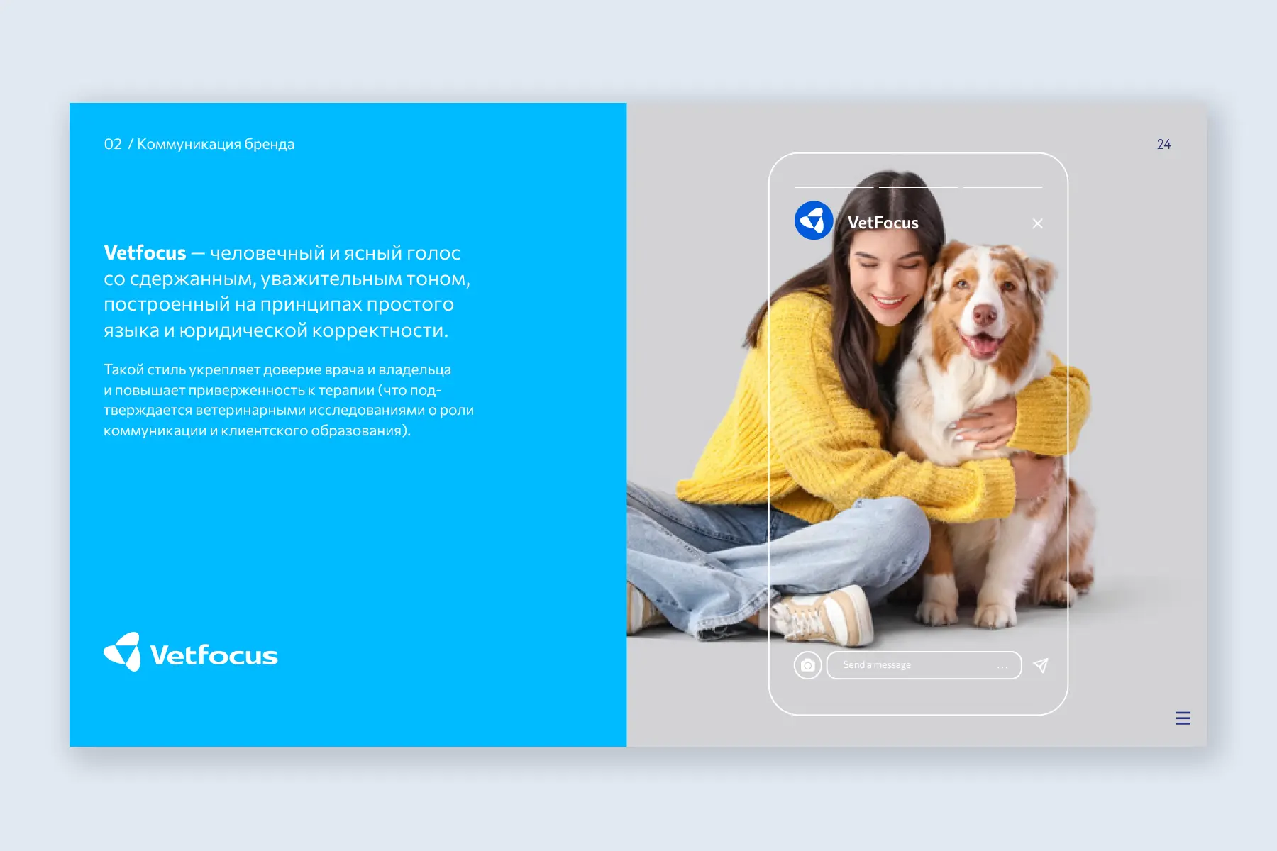 Veda Pharmacy. Creating a brand and developing a brand book for the veterinary company VEDA, a leading Russian developer in the field of veterinary phytotherapy. Establishing a corporate style and logo for the brand, the first choice in animal care and treatment.